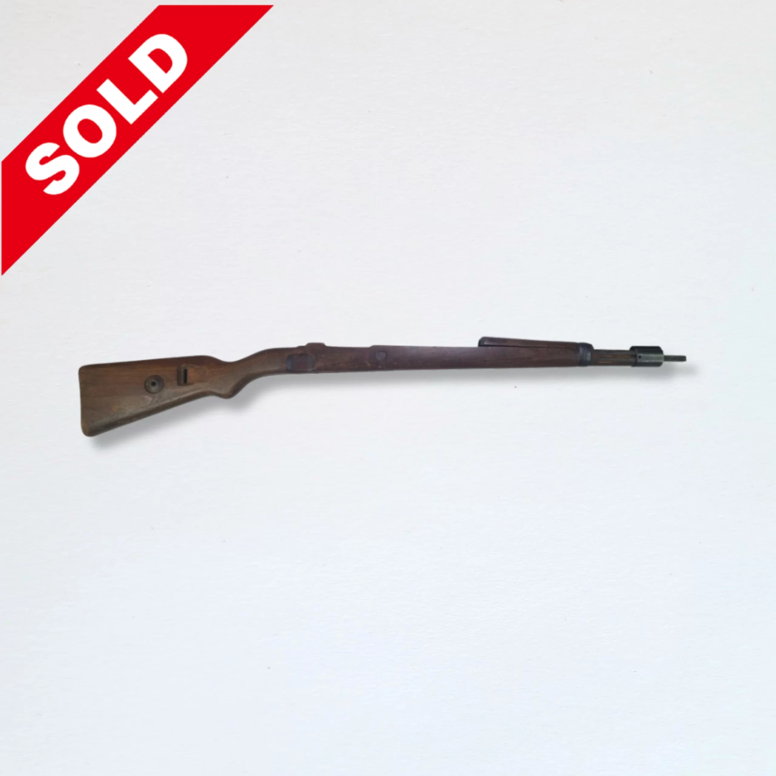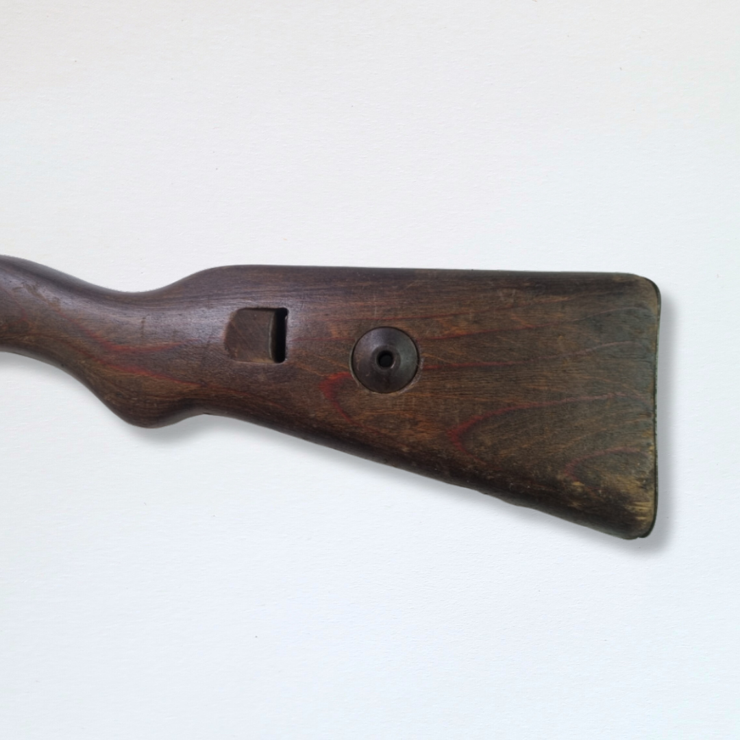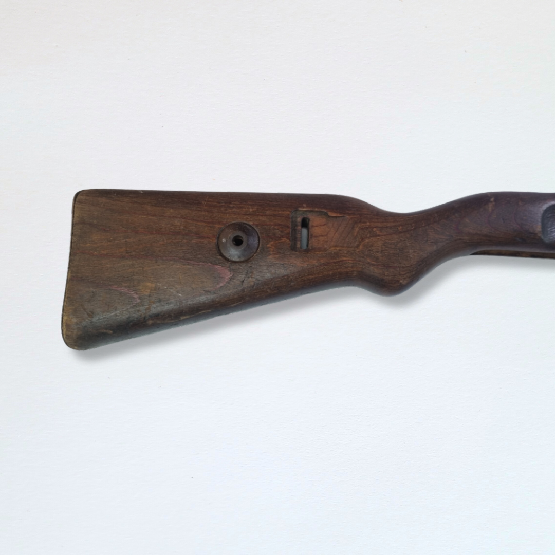 Complete K98 stock made from laminate wood with a dark finish. Very good condition. Only band spring is missing.