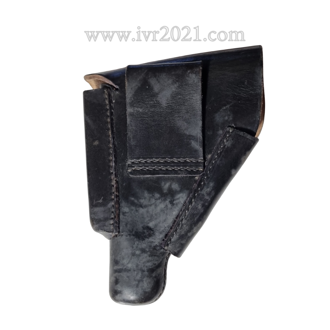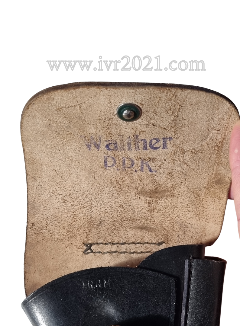 Very nice condition Leading edge holster for the Walther PPK. The holster is made in black color and the leather is in great condition and usable as well as the stitching. Nicely marked with the Akah logo and DRGM as well as a nicely visible ink stamp on the inside.