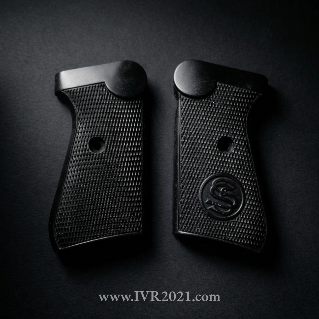 Sauer 38h grips inspired by the originals in black bakelite. They are made of the same Fenolic material as the originals, not plastic. These grips will only fit the Sauer 38h produced by the Germans during ww2. Available in different colors.