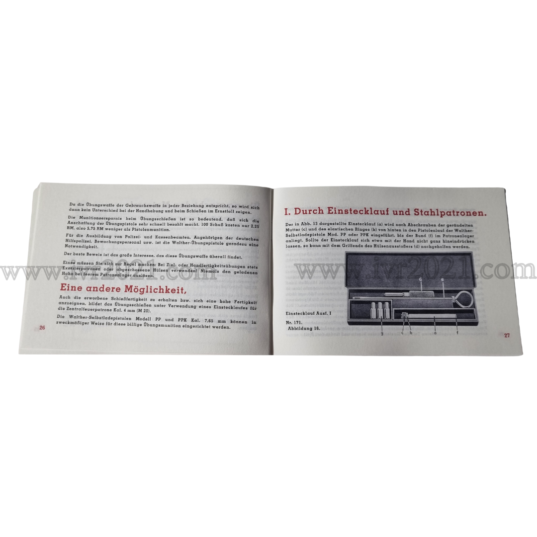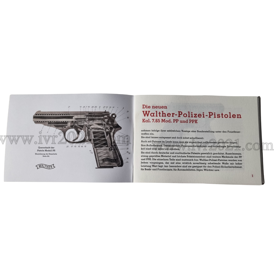 This is the standard Manual that came in the box for the Walther PP and PPK. It is a 1 to 1 reprint, carefully reverse designed using the original by IVR2021.