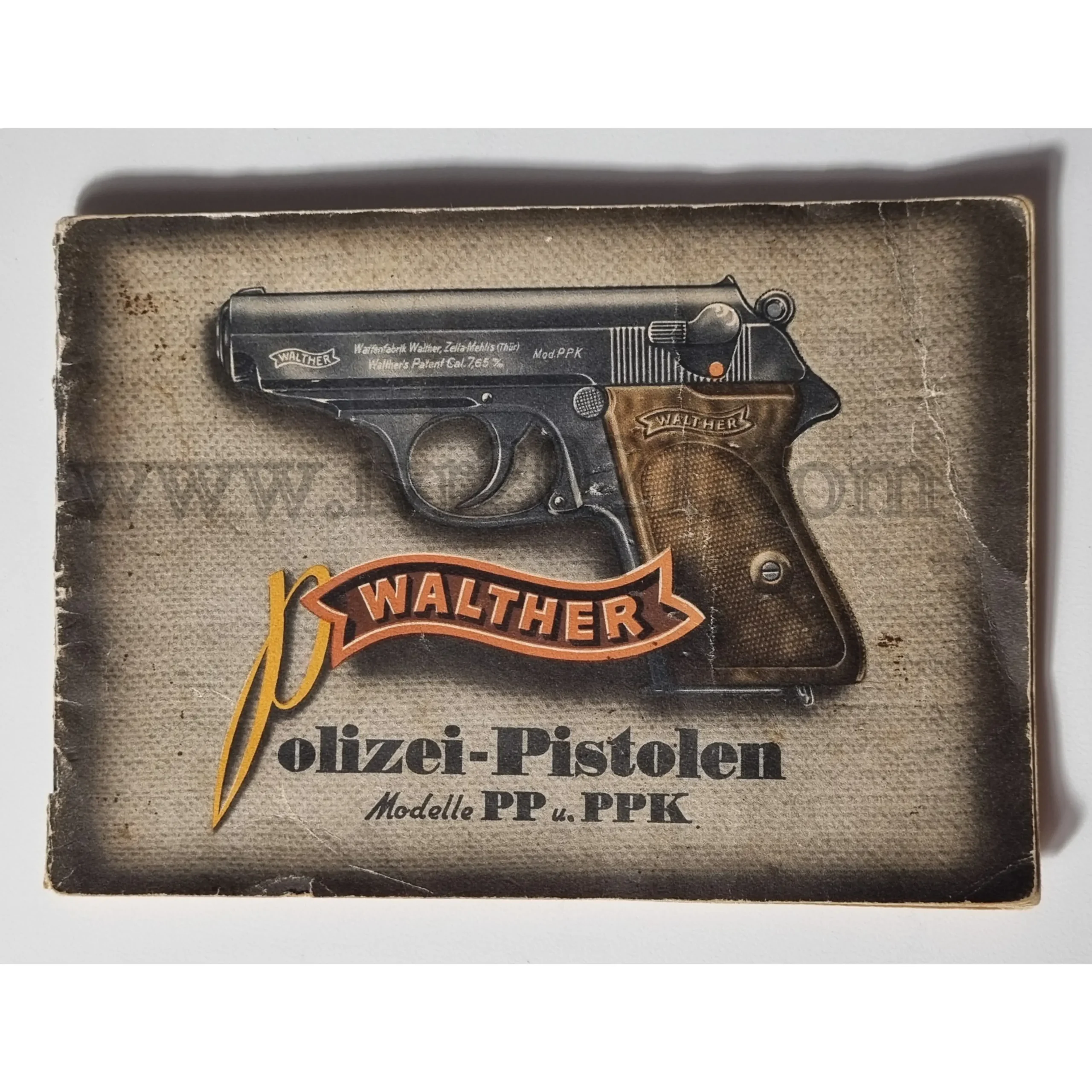 A very nice good used condition manual for the Walther PP and PPK printed in 1936. Complete and usable but some signs of use like wrinkles on a few pages and same markings with pen. Otherwise a good filler for your original cardboard box!